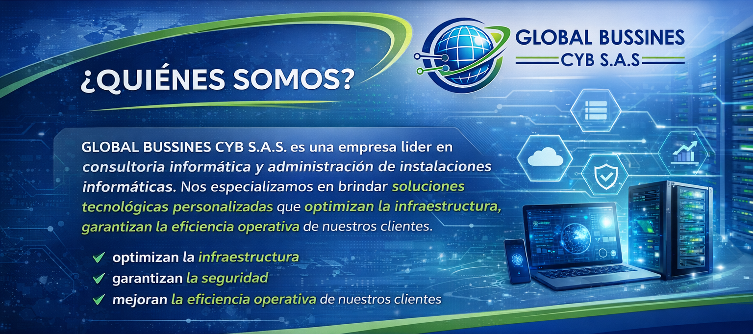 Global Bussines CYB S.A.S. es una empresa orientada a brindar soluciones tecnológicas integrales que impulsan la eficiencia, seguridad y crecimiento de las organizaciones.
